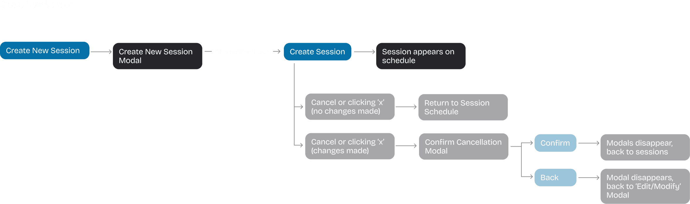 Since sessions already existed on the platform, defining management flows was straightforward: a “Create New Session” button on the dashboard and edit/delete actions on individual sessions.