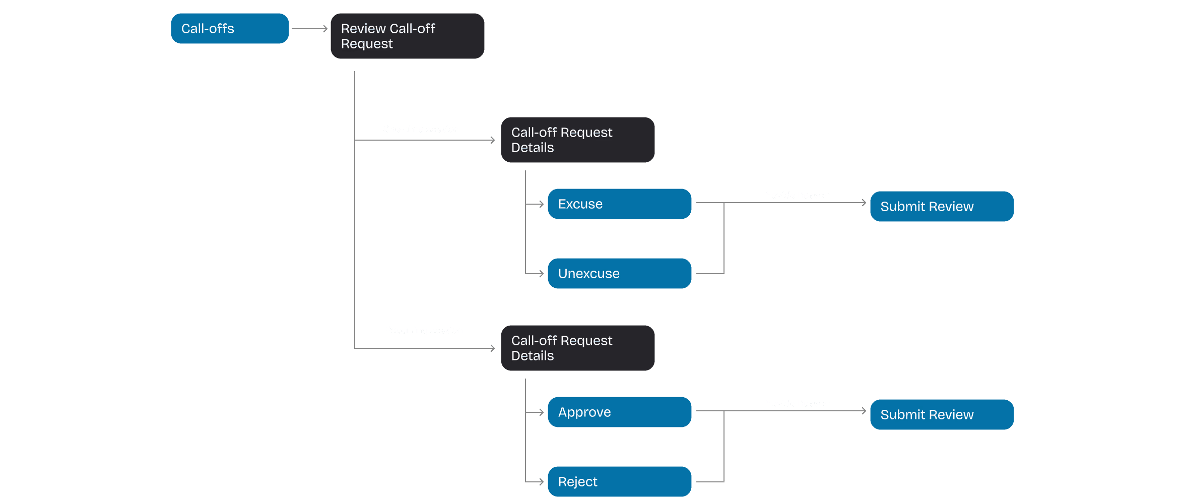 I designed the call-off flow to clarify how tutors and supervisors interact with the system and which screens were required. Tutors follow different flows for one-time versus recurring call-offs, while the supervisor review process remains largely the same.